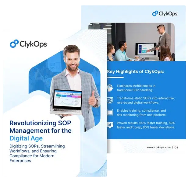 ClykOps is designed to simplify SOP management and drive measurable results for organizations. Whether you’re a growing company or an enterprise, ClykOps offers the tools to streamline processes and keep your teams compliant and efficient.